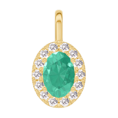 « L'ATELIER » Nº207634Pendentif Or jaune 9 carats - Émeraude Ovale 0.3 carat - Halo Diamant - Pas de chaîne