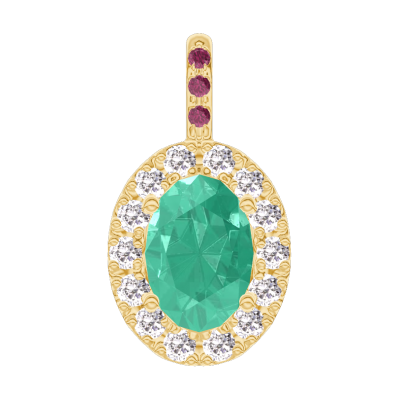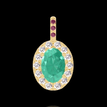« L'ATELIER » Nº 207641Pendentif Or jaune 18 carats - Émeraude Ovale 0.3 carat - Halo Diamant - Sertissage Rubis - Pas de chaîne