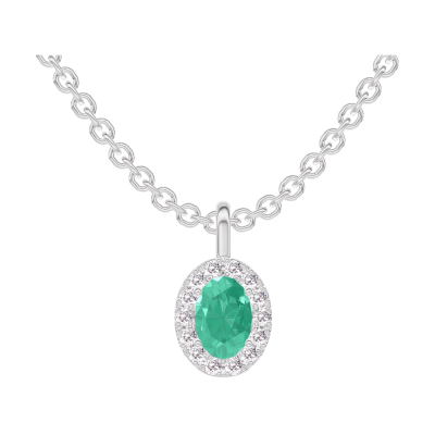 « L'ATELIER » Nº207651Pendentif Or blanc 18 carats - Émeraude Ovale 0.3 carat - Halo Diamant - Chaîne Forçat