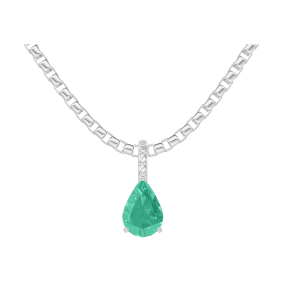 « L'ATELIER » Nº207816Pendentif Or blanc 9 carats - Émeraude Poire 0.3 carat - Sertissage Diamant - Chaîne Vénitienne 4.3 (9)