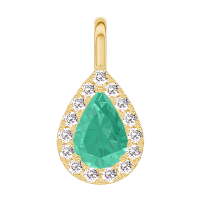 « L'ATELIER » Nº207825Pendentif Or jaune 18 carats - Émeraude Poire 0.3 carat - Halo Diamant - Pas de chaîne