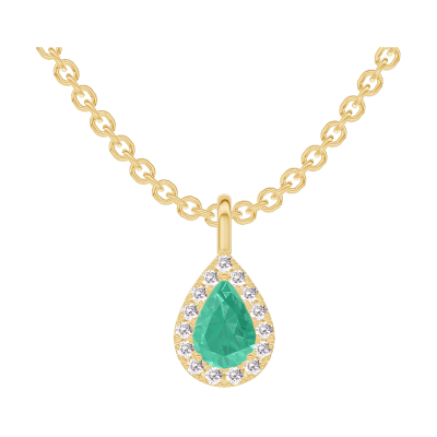 « L'ATELIER » Nº207841Pendentif Or jaune 18 carats - Émeraude Poire 0.3 carat - Halo Diamant - Chaîne Forçat