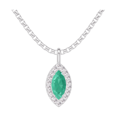 « L'ATELIER » Nº208052Pendentif Or blanc 9 carats - Émeraude Marquise 0.3 carat - Halo Diamant - Chaîne Vénitienne