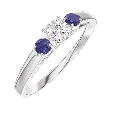 « L'ATELIER » Nº 209064Bague Or blanc 9 carats - Cluster de diamants naturels Rond équivalent 0.3 - Pierres de côté Saphir bleu 4.5 (36)