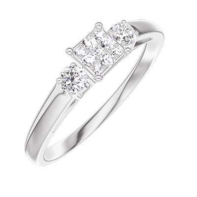 « L'ATELIER » Nº209124Bague Or blanc 9 carats - Cluster de diamants naturels Princesse équivalent 0.3 - Pierres de côté Diamant