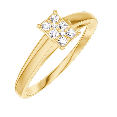 « L'ATELIER » Nº209202Bague Or jaune 9 carats - Cluster de diamants naturels Rectangle équivalent 0.3
