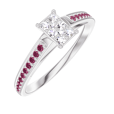 « L'ATELIER » Nº209212Bague Or blanc 9 carats - Cluster de diamants naturels Rectangle équivalent 0.3 - Sertissage Rubis
