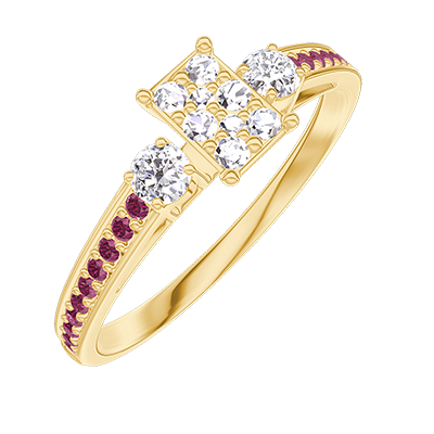 « L'ATELIER » Nº 209229Bague Or jaune 18 carats - Cluster de diamants naturels Rectangle équivalent 0.3 - Pierres de côté Diamant - Sertissage Rubis
