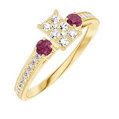 « L'ATELIER » Nº 209246Bague Or jaune 9 carats - Cluster de diamants naturels Rectangle équivalent 0.3 - Pierres de côté Rubis - Sertissage Diamant