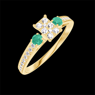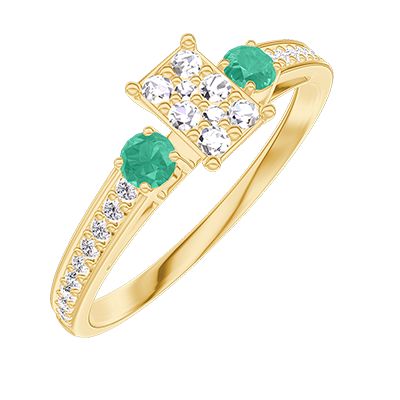 « L'ATELIER » Nº209285Bague Or jaune 18 carats - Cluster de diamants naturels Rectangle équivalent 0.3 - Pierres de côté Émeraude - Sertissage Diamant