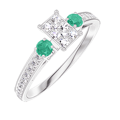 « L'ATELIER » Nº 209288Bague Or blanc 9 carats - Cluster de diamants naturels Rectangle équivalent 0.3 - Pierres de côté Émeraude - Sertissage Diamant