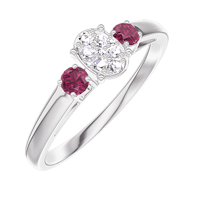 « L'ATELIER » Nº 209343Bague Or blanc 18 carats - Cluster de diamants naturels Ovale équivalent 0.3 - Pierres de côté Rubis 5 (3)