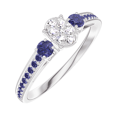 « L'ATELIER » Nº 209375Bague Or blanc 18 carats - Cluster de diamants naturels Ovale équivalent 0.3 - Pierres de côté Saphir bleu - Sertissage Saphir bleu 5