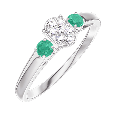 « L'ATELIER » Nº 209384Bague Or blanc 9 carats - Cluster de diamants naturels Ovale équivalent 0.3 - Pierres de côté Émeraude 5 (3)