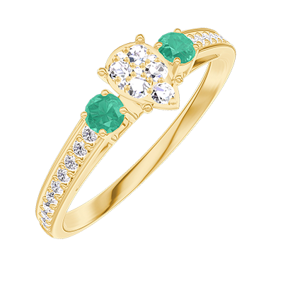 « L'ATELIER » Nº209485Bague Or jaune 18 carats - Cluster de diamants naturels Poire équivalent 0.3 - Pierres de côté Émeraude - Sertissage Diamant
