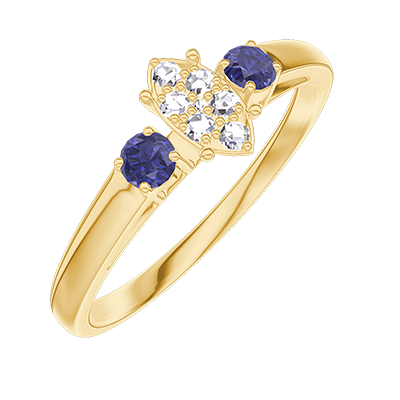 « L'ATELIER » Nº209562Bague Or jaune 9 carats - Cluster de diamants naturels Marquise équivalent 0.3 - Pierres de côté Saphir bleu