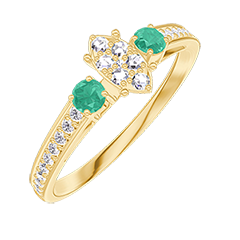 « L'ATELIER » Nº 209585Bague Or jaune 18 carats - Cluster de diamants naturels Marquise équivalent 0.3 - Pierres de côté Émeraude - Sertissage Diamant
