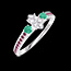 Bague Or blanc 9 carats - Cluster de diamants naturels Marquise équivalent 0.3 - Pierres de côté Émeraude - Sertissage Rubis