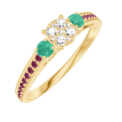« L'ATELIER » Nº209690Bague Or jaune 9 carats - Cluster de diamants naturels Rond équivalent 0.5 - Pierres de côté Émeraude - Sertissage Rubis 4.5 (11)