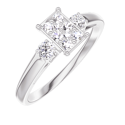 « L'ATELIER » Nº 209824Bague Or blanc 9 carats - Cluster de diamants naturels Rectangle équivalent 0.5 - Pierres de côté Diamant