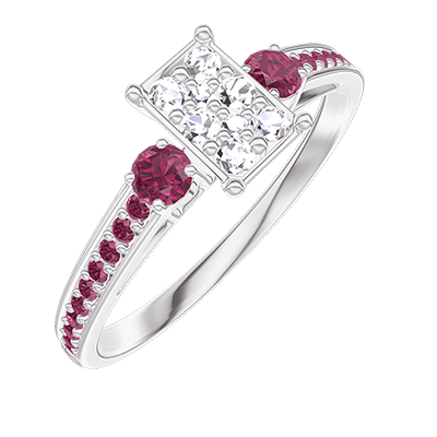 « L'ATELIER » Nº 209851Bague Or blanc 18 carats - Cluster de diamants naturels Rectangle équivalent 0.5 - Pierres de côté Rubis - Sertissage Rubis