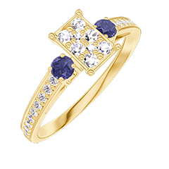 « L'ATELIER » Nº 209866Bague Or jaune 9 carats - Cluster de diamants naturels Rectangle équivalent 0.5 - Pierres de côté Saphir bleu - Sertissage Diamant