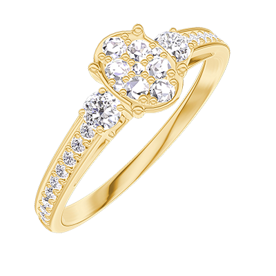 « L'ATELIER » Nº 209926Bague Or jaune 9 carats - Cluster de diamants naturels Ovale équivalent 0.5 - Pierres de côté Diamant - Sertissage Diamant
