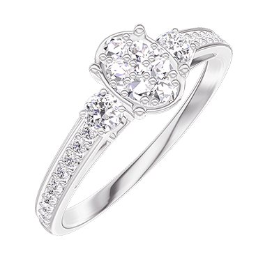 « L'ATELIER » Nº209927Bague Or blanc 18 carats - Cluster de diamants naturels Ovale équivalent 0.5 - Pierres de côté Diamant - Sertissage Diamant
