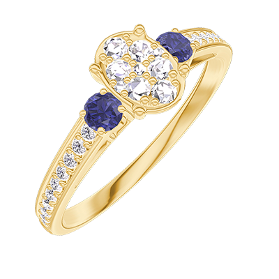 « L'ATELIER » Nº209965Bague Or jaune 18 carats - Cluster de diamants naturels Ovale équivalent 0.5 - Pierres de côté Saphir bleu - Sertissage Diamant