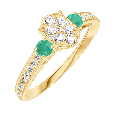 « L'ATELIER » Nº209985Bague Or jaune 18 carats - Cluster de diamants naturels Ovale équivalent 0.5 - Pierres de côté Émeraude - Sertissage Diamant