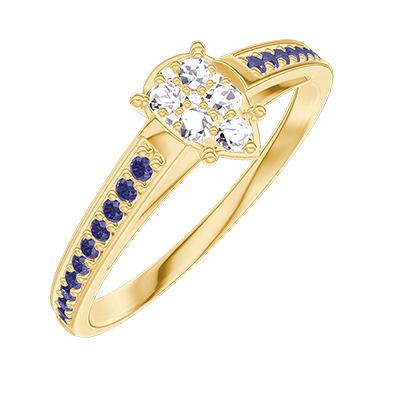 Bague Or jaune 18 carats - Cluster de diamants naturels Poire équivalent 0.5 - Sertissage Saphir bleu