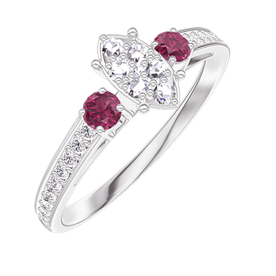 « L'ATELIER » Nº 210148Bague Or blanc 9 carats - Cluster de diamants naturels Marquise équivalent 0.5 - Pierres de côté Rubis - Sertissage Diamant