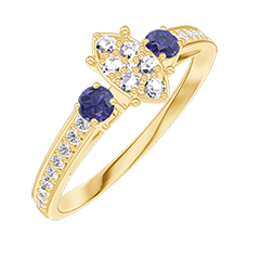 « L'ATELIER » Nº 210165Bague Or jaune 18 carats - Cluster de diamants naturels Marquise équivalent 0.5 - Pierres de côté Saphir bleu - Sertissage Diamant