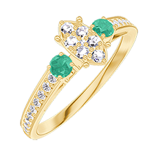 « L'ATELIER » Nº 210185Bague Or jaune 18 carats - Cluster de diamants naturels Marquise équivalent 0.5 - Pierres de côté Émeraude - Sertissage Diamant