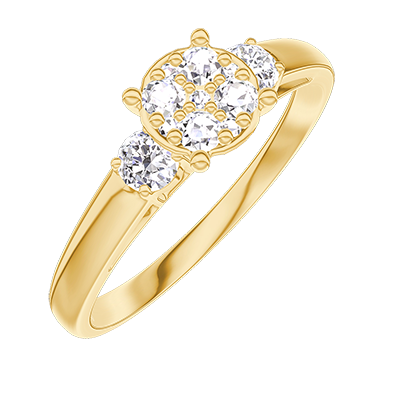 « L'ATELIER » Nº210222Bague Or jaune 9 carats - Cluster de diamants naturels Rond équivalent 0.7 - Pierres de côté Diamant  5