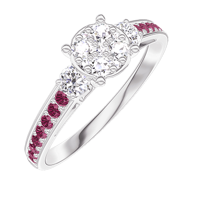 « L'ATELIER » Nº210232Bague Or blanc 9 carats - Cluster de diamants naturels Rond équivalent 0.7 - Pierres de côté Diamant - Sertissage Rubis 5 (6)