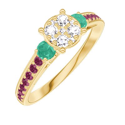 « L'ATELIER » Nº210290Bague Or jaune 9 carats - Cluster de diamants naturels Rond équivalent 0.7 - Pierres de côté Émeraude - Sertissage Rubis 5 (6)