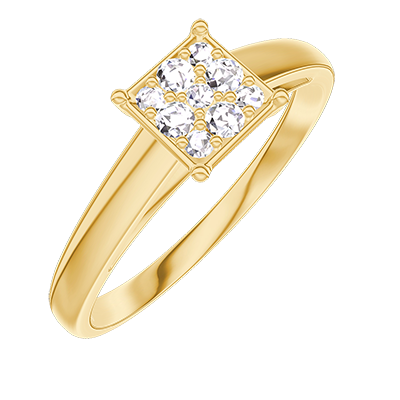 « L'ATELIER » Nº210302Bague Or jaune 9 carats - Cluster de diamants naturels Princesse équivalent 0.7