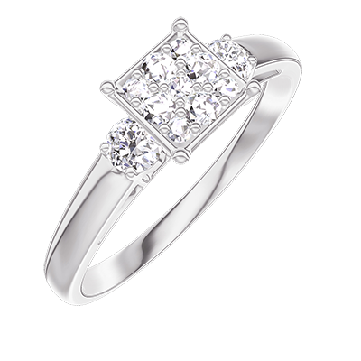 « L'ATELIER » Nº 210323Bague Or blanc 18 carats - Cluster de diamants naturels Princesse équivalent 0.7 - Pierres de côté Diamant