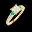 « L'ATELIER » Nº 210386Bague Or jaune 9 carats - Cluster de diamants naturels Princesse équivalent 0.7 - Pierres de côté Émeraude - Sertissage Diamant