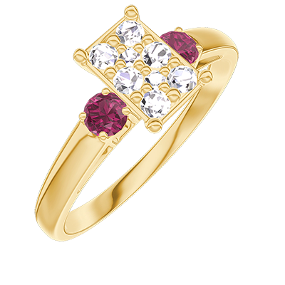 « L'ATELIER » Nº210441Bague Or jaune 18 carats - Cluster de diamants naturels Rectangle équivalent 0.7 - Pierres de côté Rubis
