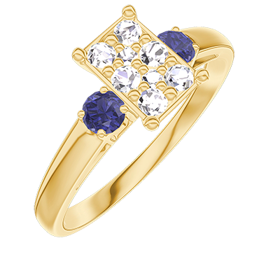 « L'ATELIER » Nº210461Bague Or jaune 18 carats - Cluster de diamants naturels Rectangle équivalent 0.7 - Pierres de côté Saphir bleu