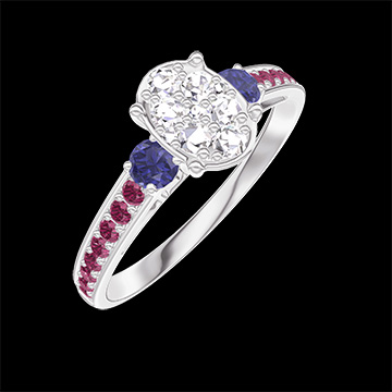 « L'ATELIER » Nº 210571Bague Or blanc 18 carats - Cluster de diamants naturels Ovale équivalent 0.7 - Pierres de côté Saphir bleu - Sertissage Rubis