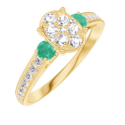 « L'ATELIER » Nº210585Bague Or jaune 18 carats - Cluster de diamants naturels Ovale équivalent 0.7 - Pierres de côté Émeraude - Sertissage Diamant
