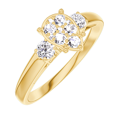 « L'ATELIER » Nº 210622Bague Or jaune 9 carats - Cluster de diamants naturels Poire équivalent 0.7 - Pierres de côté Diamant