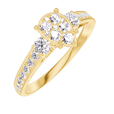 « L'ATELIER » Nº 210625Bague Or jaune 18 carats - Cluster de diamants naturels Poire équivalent 0.7 - Pierres de côté Diamant - Sertissage Diamant