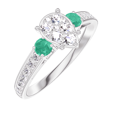 « L'ATELIER » Nº210687Bague Or blanc 18 carats - Cluster de diamants naturels Poire équivalent 0.7 - Pierres de côté Émeraude - Sertissage Diamant