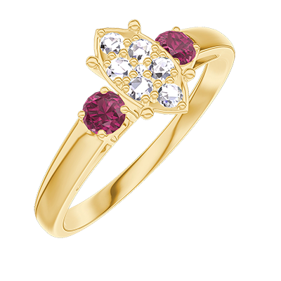 « L'ATELIER » Nº210742Bague Or jaune 9 carats - Cluster de diamants naturels Marquise équivalent 0.7 - Pierres de côté Rubis