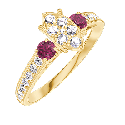 « L'ATELIER » Nº 210745Bague Or jaune 18 carats - Cluster de diamants naturels Marquise équivalent 0.7 - Pierres de côté Rubis - Sertissage Diamant