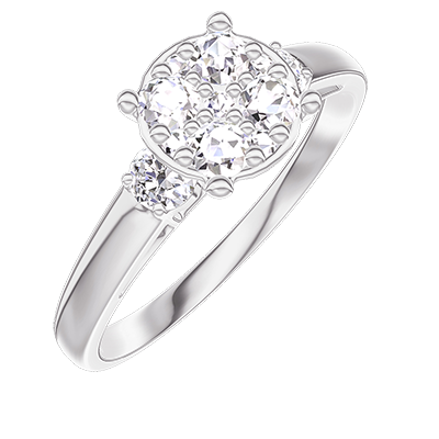 « L'ATELIER » Nº210824Bague Or blanc 9 carats - Cluster de diamants naturels Rond équivalent 1 - Pierres de côté Diamant  4.7